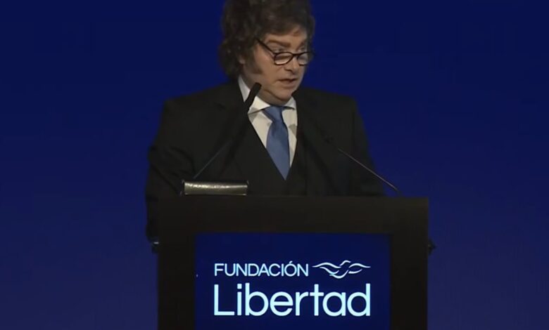 Tras aquel comentario, Milei precisó que la charla tendría por objeto demostrar que “las ideas de la libertad funcionan”. “Hoy escucho a muchos que se llenan la boca con cosas que no les parecen correctas, pero al momento que tenían que hacer las cosas… Nosotros a nivel nacional no solo que hicimos el ajuste más grande en la historia de la Argentina si no que le devolvimos plata a los argentinos”, destacó.